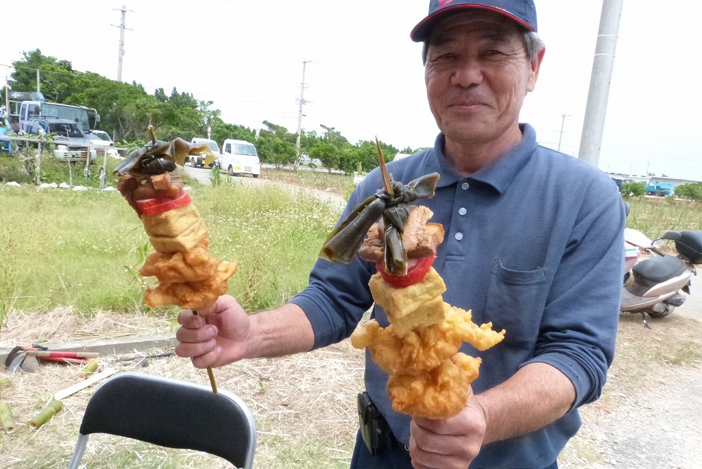 スラブ打ちで振る舞われるごちそう「じゃんきむぬ」=3日、多良間