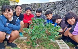 ガジュマルは親泊さんが亡くなった後も家族で大切に育てた。鉢に植えた枝からしっかりと根が張ってきたことから21年7月に親泊さんの孫である佐和田桜さん(5年)が、再び同校に寄贈した。