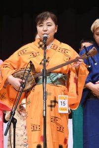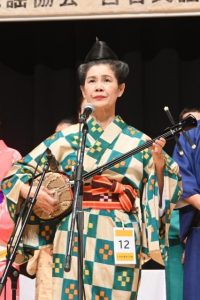 第9回とうがにあやぐ大会(主催・宮古民謡保存協会、沖縄宮古民謡協会、宮古民謡協会)が26日、市未来創造センターで開催された。22人の唄者が長年歌い継がれてきた宮古民謡の名曲を感情豊かに歌い上げ、日ごろの稽古の成果を披露した。審査の結果、宮古島市の根間玉恵さん(64)、垣花肖枝(のりえ)さん(51)の2人が大会初の同点となり優勝した。