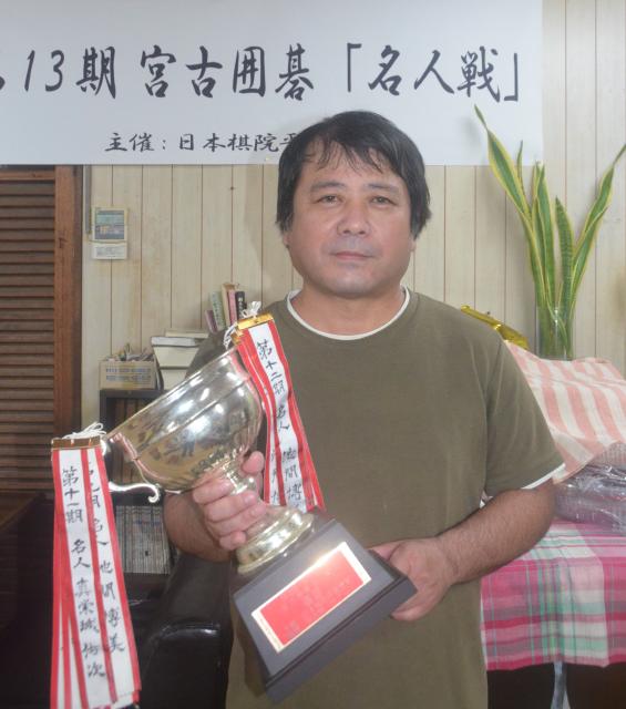 第13期宮古囲碁名人戦(主催・日本棋院平良支部、後援・宮古毎日新聞社)の決勝リーグが23、24日の両日、こすみ囲碁教室で行われ、知念一将六段が7年ぶり3度目の優勝を果たした。冷静で手堅い打ち回しが光った。知念六段は「優勝はうれしい。県大会を制するのが自分の夢なので、これをかなえたい」と喜びを語った。