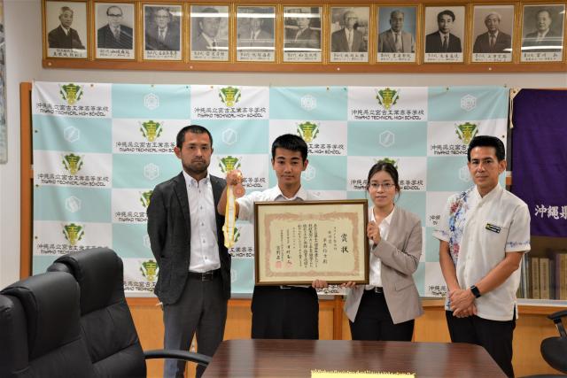報告会で知念校長は「大会に向けて日々、努力する姿を私や後輩なども見ていた。練習は結果を裏切らないということを証明してくれた」と受賞をたたえた。