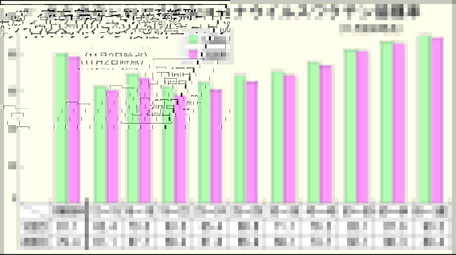 2回目接種率を年代別に見ると、最も高いのは65歳以上の89・4%。次いで60~64歳の86・3%、50~59歳の82・1%と続く。最も低いのは19~22歳の58・4%。次いで12~15歳の61・1%、23~24歳の61・6%。10月10日時点では23~24歳が2番目に低い接種率となっていたが、約1カ月で5・7%ポイント上昇し、1・4ポイント上昇にとどまった12~15歳を上回った。