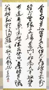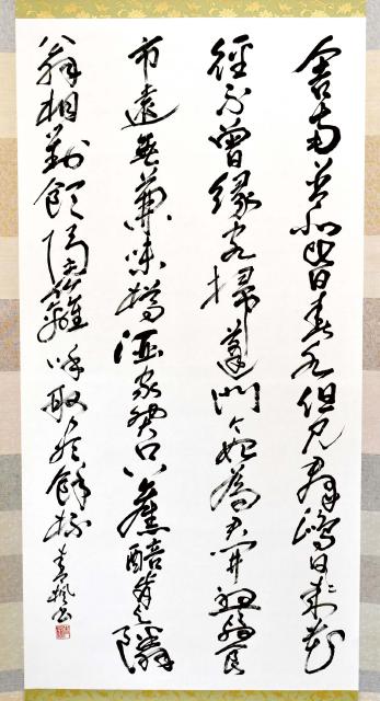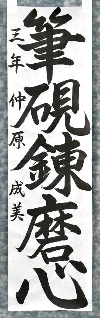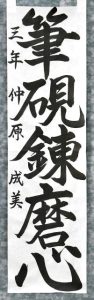 審査を行った書心会の宮城会長は高校・一般の部で大賞に輝いた奥平さんの作品について「長年の修練の技で力みのない柔らかな線を羊毛の筆で表現している。杜甫の詩を、奇をてらわずに丁寧に書いている」、児童・生徒の部大賞の仲原さんの作品については「紙面を大きく見せる伸びやかな線を、穂先を駆使した筆力のある作品」と評価。全体としては「課題のまとめ方、落款の位置など年々、向上が見られる」と述べた。