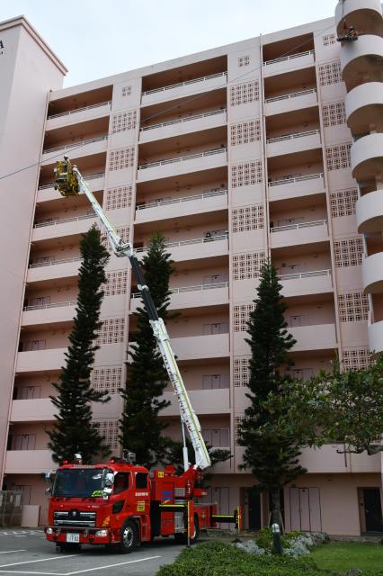 今回の訓練は9日から15日までの秋季全国火災予防運動の行事の一環として実施された。ここ数年、宮古島では中高層階の建物の建設が増えていることを踏まえ、消防本部が南西楽園リゾートに協力を要請し、合同訓練として行われた。