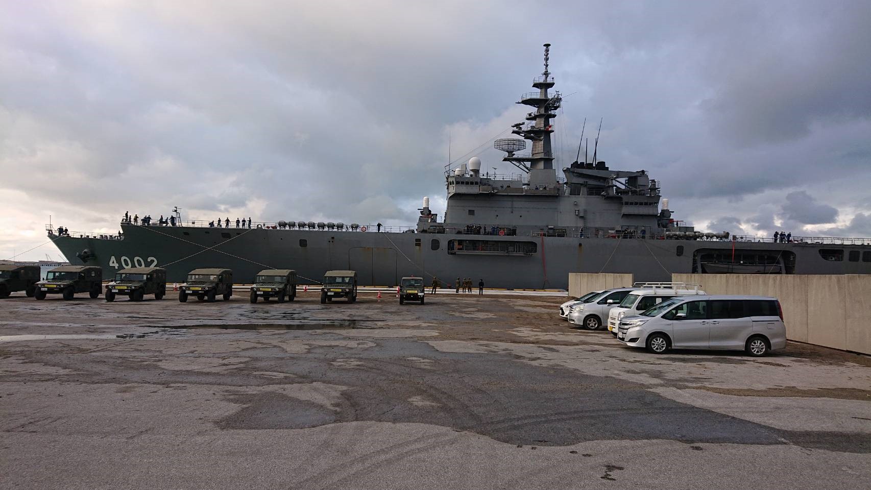 【速報】誘導弾搭載とみられる海上自衛隊輸送艦が平良港着岸