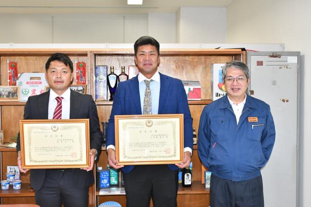 青年漁業士認定証授与式が24日、県宮古合同庁舎で行われ、宮古島漁業協同組合所属の根間太一さん(27)と与那覇龍平さん(27)に認定証が交付された。2人は「生産量増加を目指したい」などと意気込んだ。