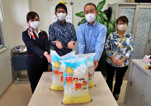 JALスカイエアポート沖縄/子供たちにと米30㌔寄贈