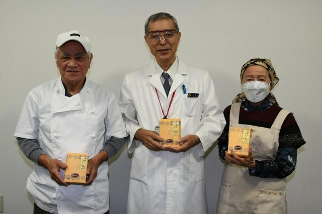 亀川菓子店の亀川弘代表と妻のミツ子さんが2日、宮古病院(本永英治院長)を訪れ、新型コロナウイルス対応で奮闘する医療従事者に感謝の気持ちを込めて、黒糖カステラ100箱を寄贈した。