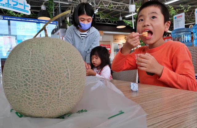 島の駅みやこの「メロメロメロン島メロンまつり」が4日、2日間の日程で始まった。初日は糖度14度以上の島産メロン試食や通常価格は3700円の食べごろ大玉メロンが1500円で購入できる抽選会などが行われ、会場はにぎわった。