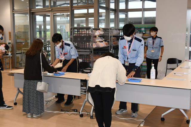 宮古郵便局は17日、経済活性化を目的に市が交付する市経済振興クーポン(通称・市ワイドークーポン)を、配達前に受け取りへ来た人に手渡す臨時窓口を市役所1階ロビーに設置した。対象はクーポンを電子申請した平良の市街地在住者。受け取りは住所ごとに期間が設定されていて、同日から23日までは西仲宗根、東仲宗根、荷川取、西里の1番地から1471番地までの住所に住む対象市民のみとなる。