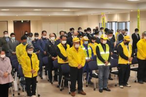 2021年年末年始の交通安全県民運動宮古地区出発式(主催・市交通安全推進協議会)が20日、市役所で行われた。警察官や交通安全推進協のメンバーら約70人が参加し、飲酒運転の根絶や危険運転の防止などに取り組んでいくことを確認した。運動期間は21日~来年1月4日までで、スローガンは「ゆとりある心と車間のディスタンス」。