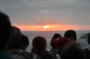 初日の出を拝もうとする市民が1日、東海岸の一周道路などに集まった。天気は曇りだったが、雲の隙間から太陽が姿を現すと「出た」「見えた」などと歓声が上がった。