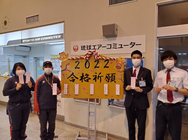 「全員合格しますように」-。琉球エアーコミューター(RAC)多良間空港所は10日、多良間空港ロビーに毎年恒例の合格祈願絵馬を設置した。