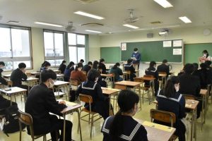 大学入試シーズンの幕開けとなる大学入試共通テストが15日、宮古高校を含む全国677の試験場で始まった。16日まで。同高校での志願者数は105人。緊張した様子で試験問題と解答用紙を受け取り、志望校合格を目指して鉛筆を走らせていた。