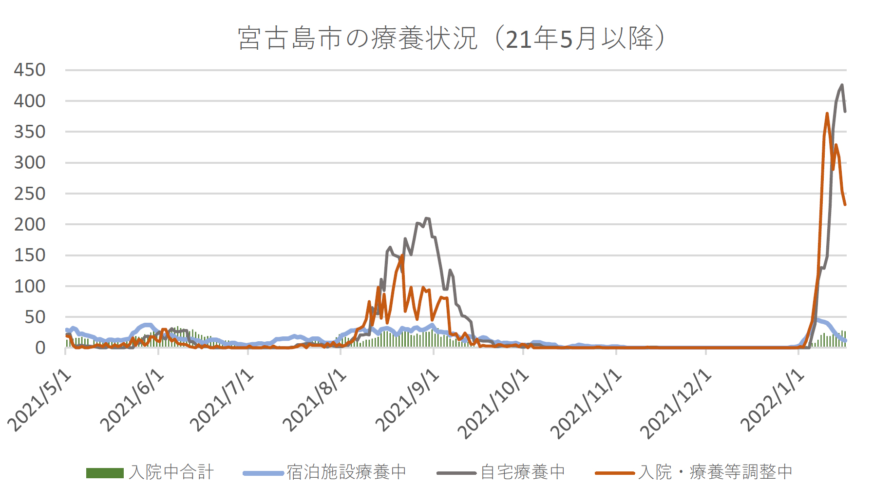 宮古病院入院中 23人(中等症8人、軽症15人)