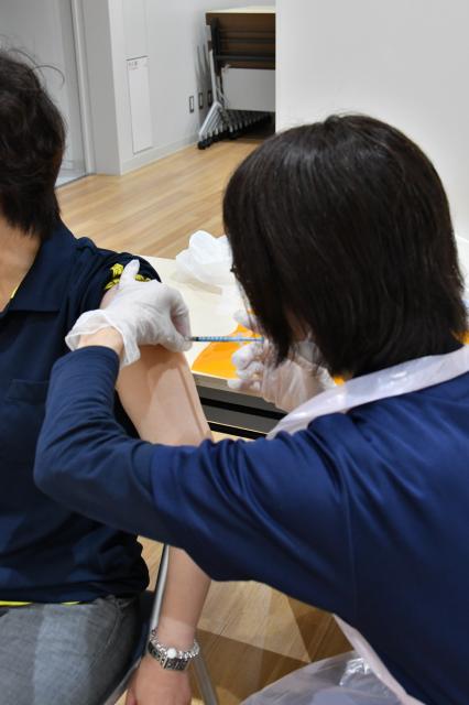 ワクチン接種事業などに関係する市の職員15人は21日、市保健センターで3回目の接種を行い、モデルナ社製(スパイクバックス)のワクチンを接種した。市ではこれまでファイザー社製のワクチンを使用してきたが、国の計画を基に供給を受けており、3回目の集団接種ではモデルナ社製のワクチンが使用される。このことから、職員が接種することで安全性を強調しながら、市民に積極的な接種を呼び掛けている。