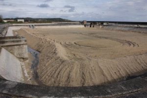 市は2018年に養殖施設の概況を調査。破損や劣化による亀裂などを調べ、施設の保全計画書をまとめている。同調査では、施設壁面に十数カ所の破損が確認された。市は新年度で改修工事に向け、漏水箇所を改めて調査する。