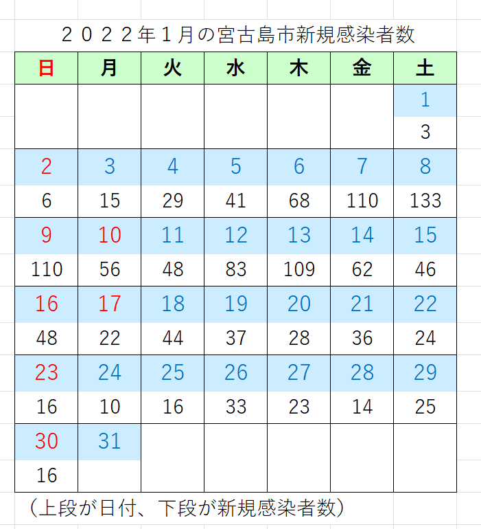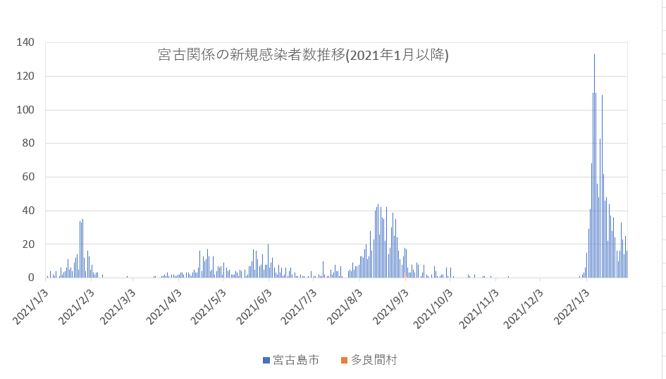 【那覇支社】県は30日、宮古島市で新たに16人が新型コロナウイルスに感染したと発表した。前週の同じ曜日と同数となった。市内の直近1週間の新規感染者数(人口10万人当たり)は250.80人となり、県の値(481.44人)を下回る感染状況となっている。多良間村では陽性者は確認されなかった。