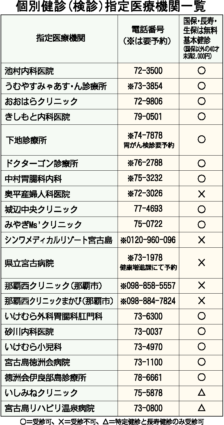 長引く新型コロナウイルス感染症の影響を受けて宮古島市における2021年度の特定健診の受診率が前年度同様に低迷し、1月末現在で受診率は23・9%にとどまっている。年度末まで残り2カ月となる中、市健康増進課では「3月末まで指定の医療機関で受診できる個別健診を実施しているので対象の市民は積極的に受診してほしい」を呼び掛けた。