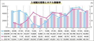入域観光客は外国クルーズ船の寄港が顕著になる以前の14年は42万1703人でその後、年々増加傾向が続き、19年には過去最高の113万人となった。しかし、20年から国内で新型コロナウイルス感染症が影響し減少に転じた。21年も1、2月の緊急事態宣言、4、5月のまん延防止等重点措置、5月下旬からは約4カ月におよぶ緊急事態宣言の発出で前年を割り込んだ。
