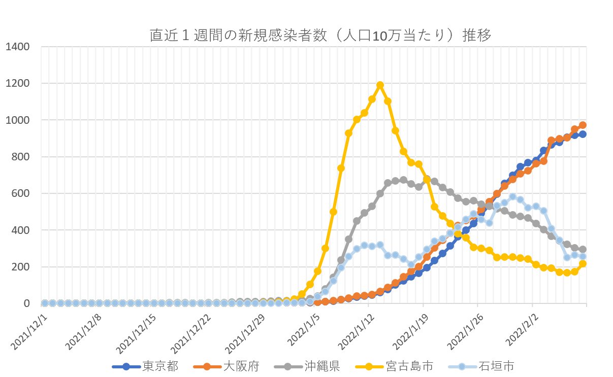 【速報・新型コロナ】8日、直近1週間の新規感染者(人口10万人当たり)