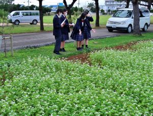 昨年末に同班が植え付けた日本そばは現在、同校の第2農場で花が満開となっている。