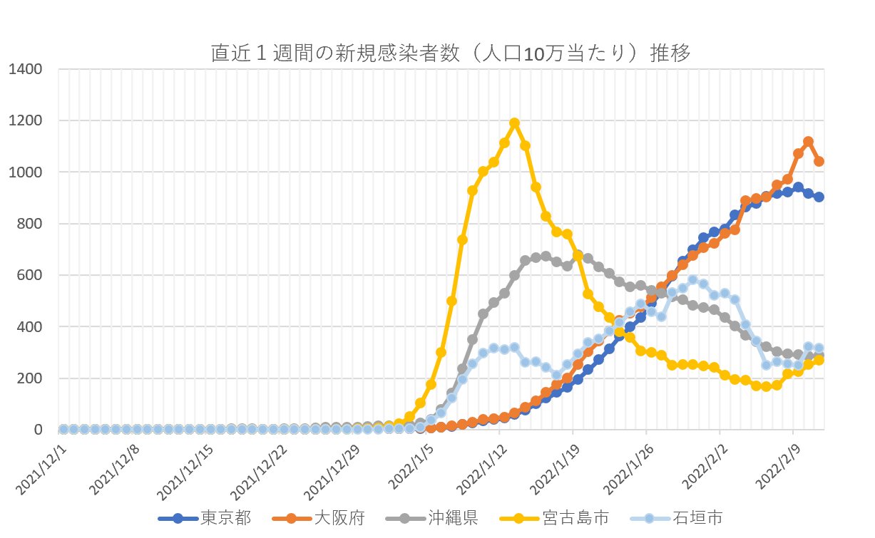 【速報・新型コロナ】11日、直近1週間の新規感染者(人口10万人当たり)