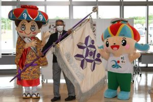 市に大会旗をリレー/市役所で式典