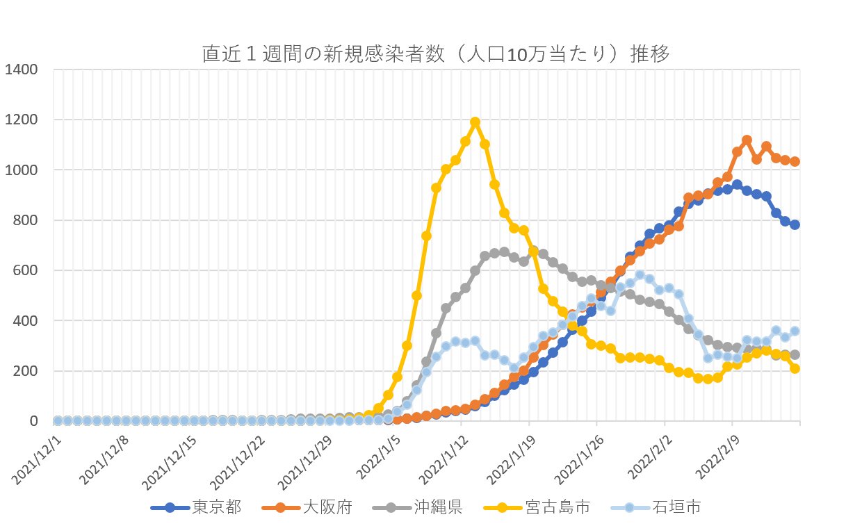 【速報・新型コロナ】15日、直近1週間の新規感染者(人口10万人当たり)