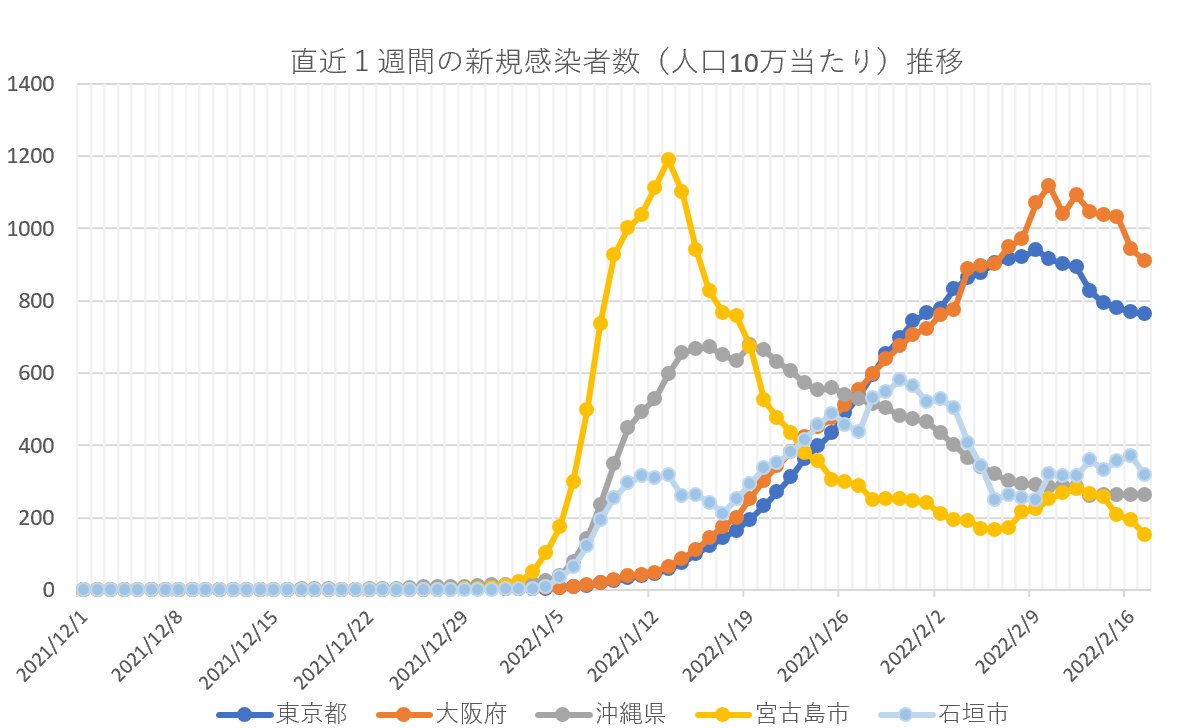 【速報・新型コロナ】17日、直近1週間の新規感染者(人口10万人当たり)