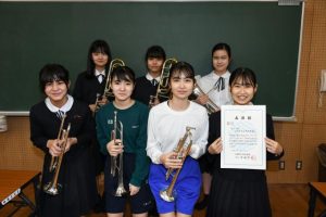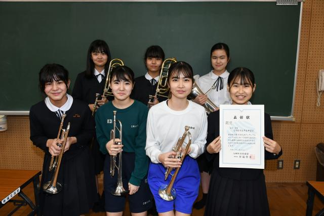 平良中学校吹奏楽部が12日に開催された第47回九州アンサンブルコンテストで銀賞、5、6日に開かれた第47回県ソロコンテストでは同部部長の友利萩榎さん(2年)が金賞とグランプリを、佐和田美咲さん(1年)は金賞を獲得した。17日に同校で受賞者たちが喜びを報告した。