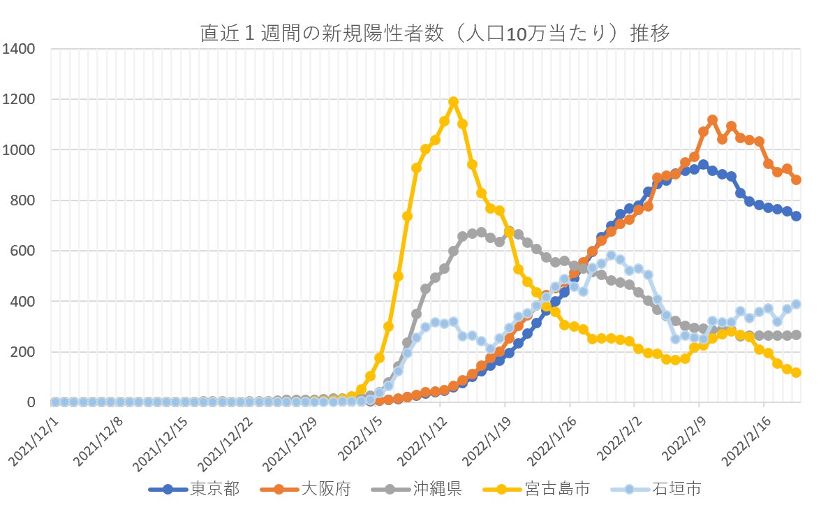 【速報・新型コロナ】19日、直近1週間の新規陽性者(人口10万人当たり)