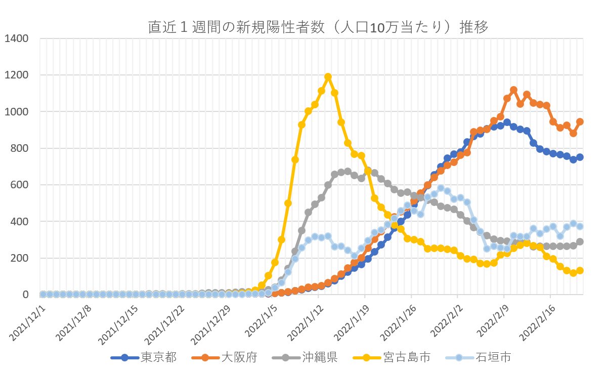 【速報・新型コロナ】20日、直近1週間の新規陽性者(人口10万人当たり)