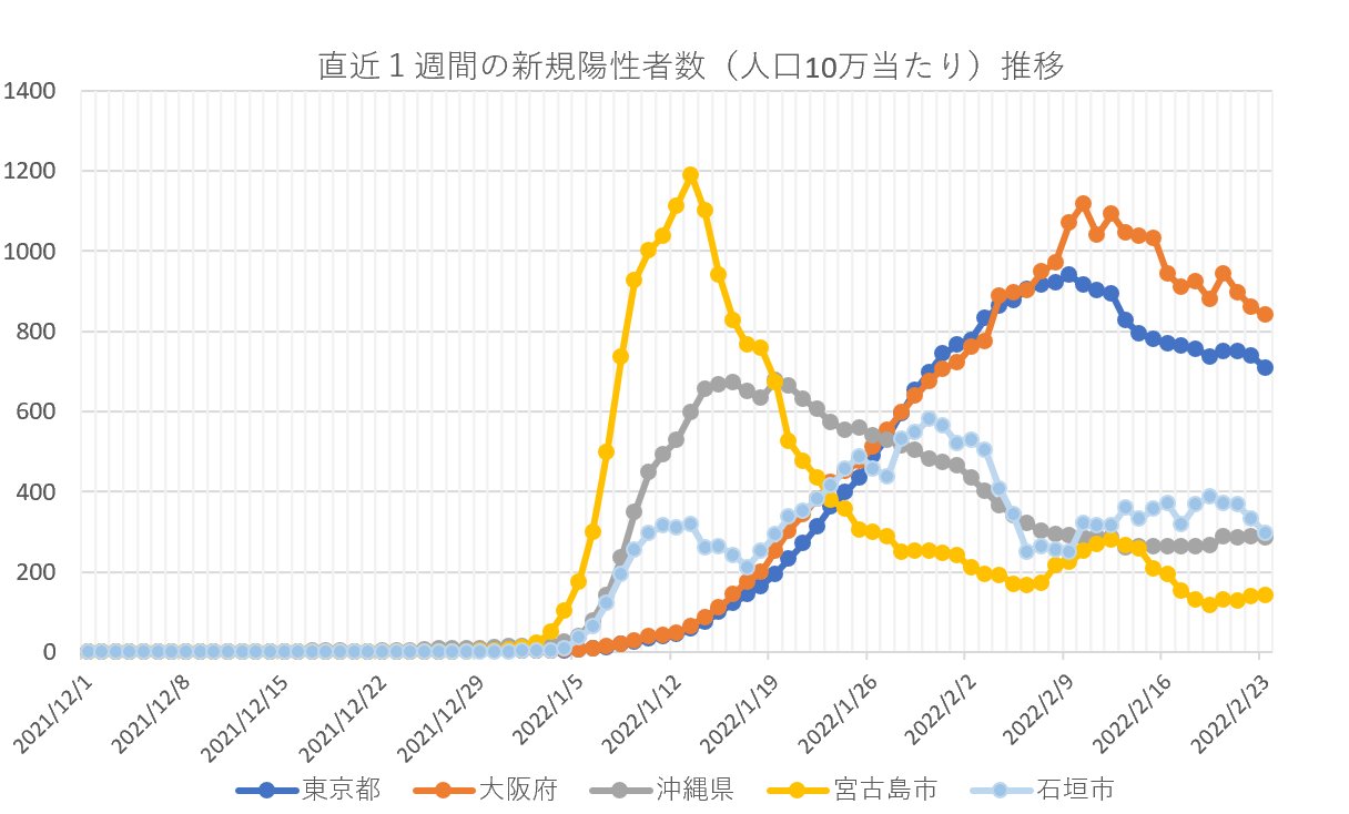 【速報・新型コロナ】23日、直近1週間の新規陽性者(人口10万人当たり)