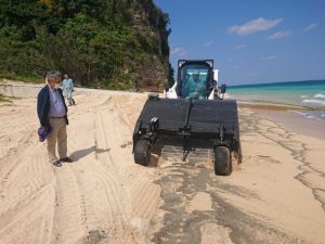 ビーチクリーナーで海岸清掃/南開建設が試験的実施