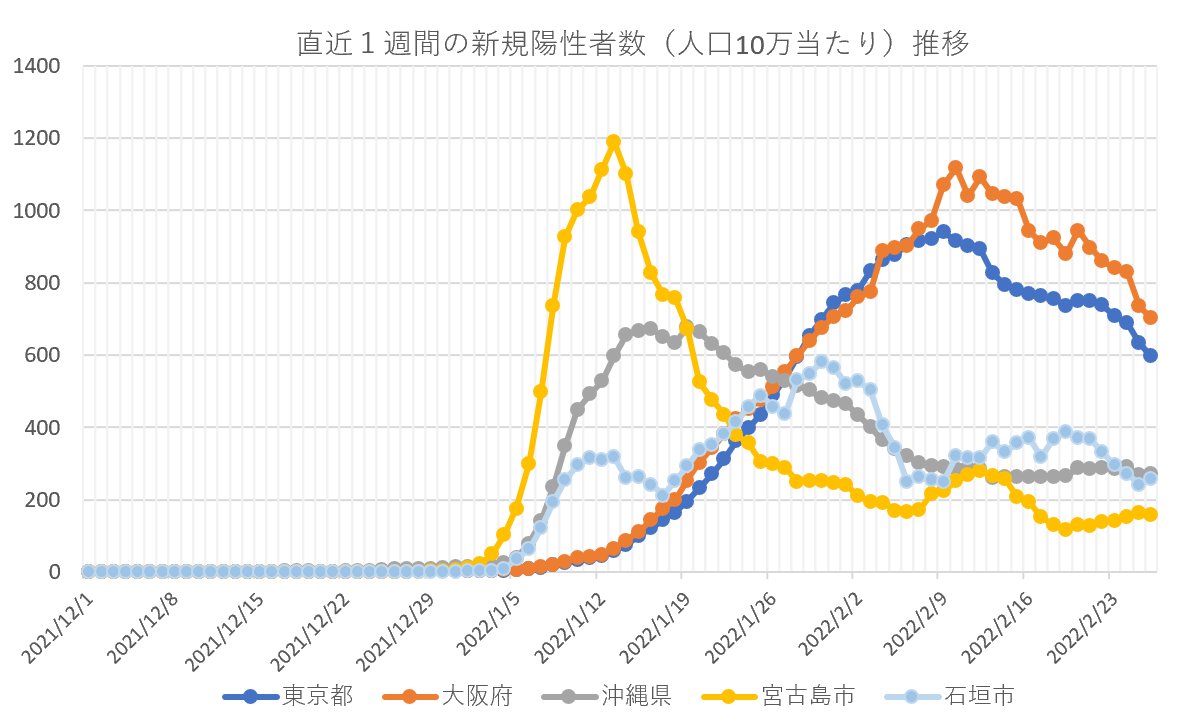 【速報・新型コロナ】26日、直近1週間の新規陽性者(人口10万人当たり)