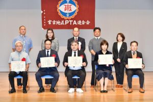 式典には宮古地区PTA連合会の上地庸一会長をはじめ、メンバーらも参加し、受賞を喜んだ。