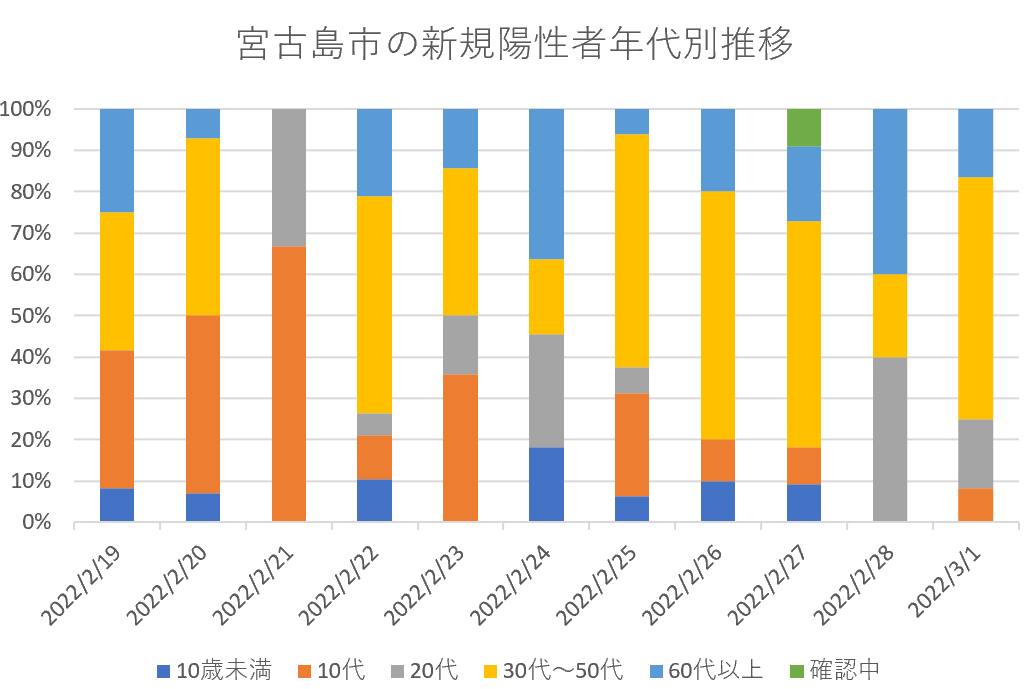 【速報・新型コロナ】1日、宮古島市の新規陽性者年代別内訳