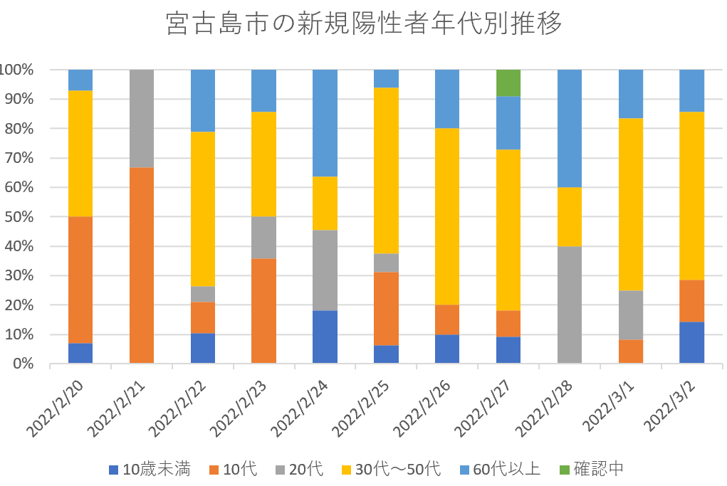 【速報・新型コロナ】2日、宮古島市の新規陽性者年代・職業別内訳