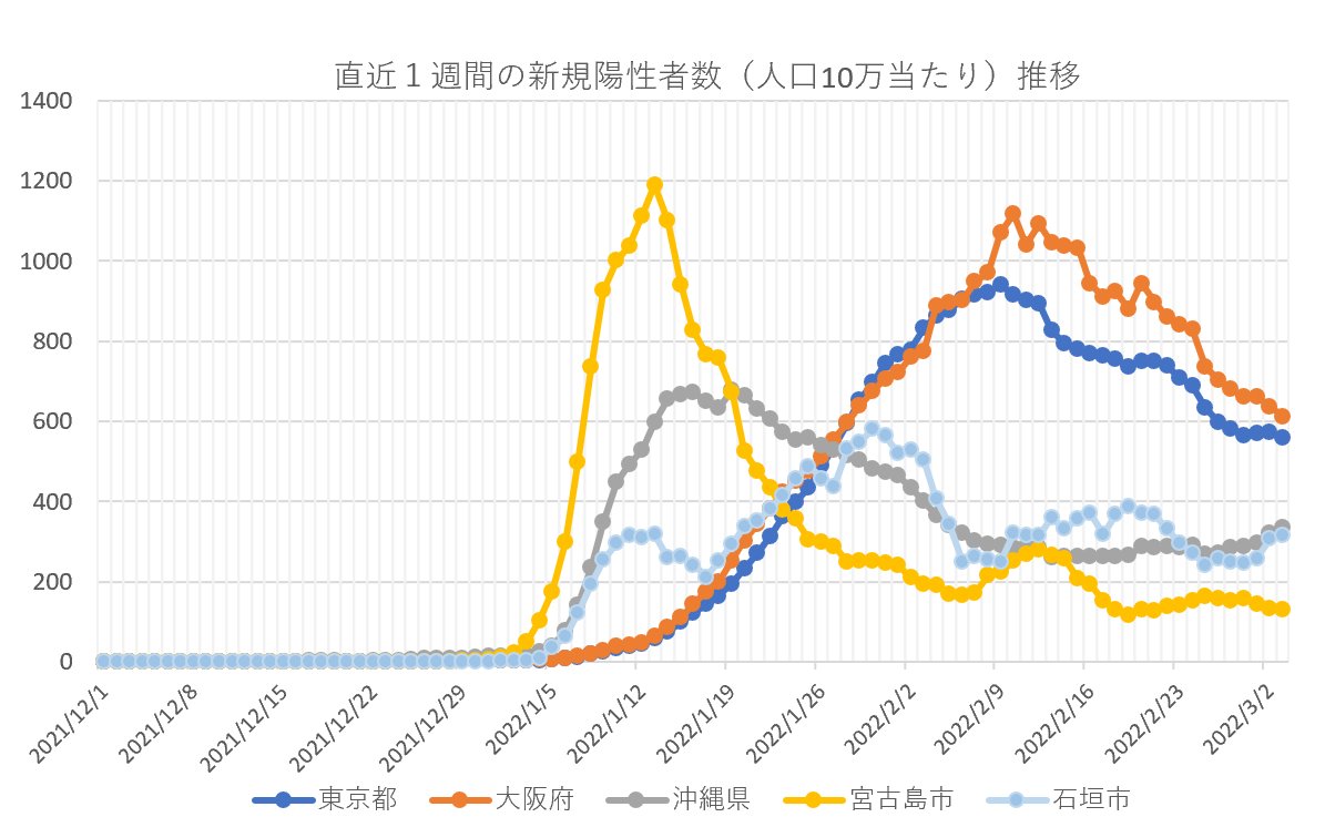 【速報・新型コロナ】3日、直近1週間の新規陽性者(人口10万人当たり)