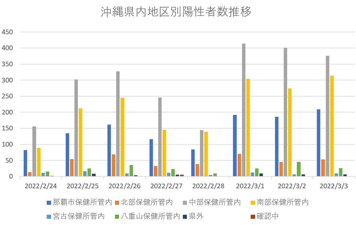 【速報・新型コロナ】3日、沖縄県内の新規陽性者数居住地別内訳