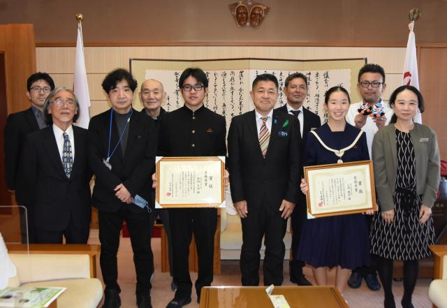 【那覇支社】2021年度北方領土沖縄県作文コンクールの表彰式が3日、県議会で行われ、最優秀賞に選ばれた市立北中学校3年の小西桃花さん(県民会議会長賞)と仲間友佑さん(教育者会議会長賞)の2人が表彰を受けた。県民会議の会長を務める赤嶺昇県議会議長と、山内治教育者会議会長から賞状を受け取った2人は、喜びつつ今後も領土問題に関心を持っていく姿勢を示した。