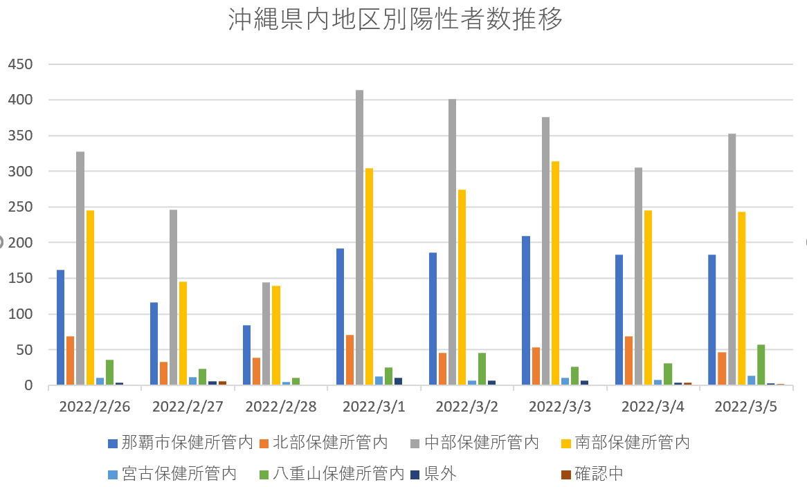 【速報・新型コロナ】5日、沖縄県内の新規陽性者居住地別内訳
