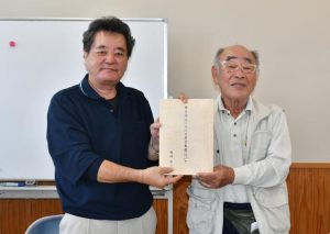 60年前の調査冊子贈呈/親泊さん、腰原自治会に