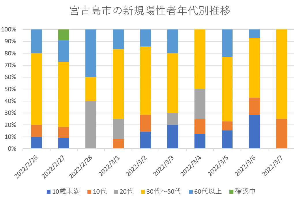 【速報・新型コロナ】7日、宮古島市の新規陽性者年代・職業別内訳