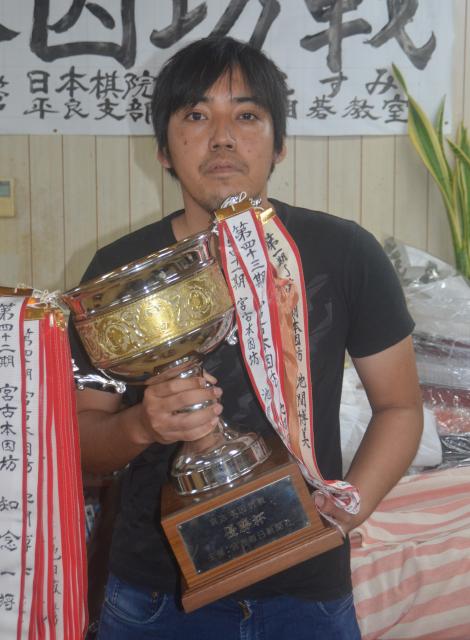 第44期宮古本因坊戦(主催・宮古毎日新聞社、主管・日本棋院平良支部、協賛・こすみ囲碁教室)の決勝リーグが、6日、こすみ囲碁教室で行われ、真栄城佑次六段が2連覇を達成した。持ち前の鋭い攻めで優勝を勝ち取った。「2連覇はうれしい。来年も優勝したい」と喜びを語った。