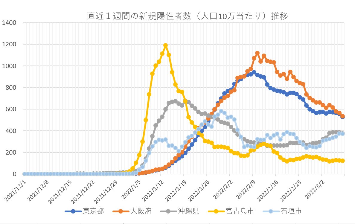 【速報・新型コロナ】8日、直近1週間の新規陽性者(人口10万人当たり)