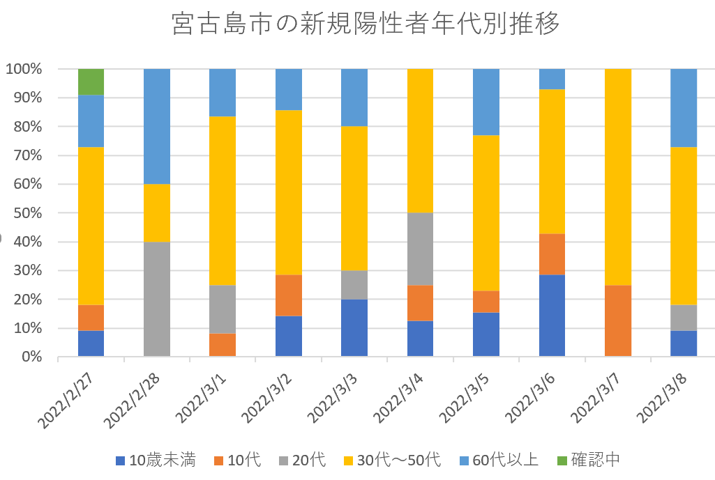 【速報・新型コロナ】8日、宮古島市の新規陽性者年代・職業別内訳