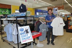 しわになりにくい形態安定のビジネスタイプ、人気ブランドのMAJUNの新作、冠婚葬祭用のフォーマルに伝統工芸のミンサー織りかりゆしなど、4メーカー計1200着を用意している。サイズは種類にもよるがSから5Lまでをそろえた。レジでの割り引きなど特別価格で販売する。またオンラインショップでも販売しており、店舗で受け取れば、送料がかからない。