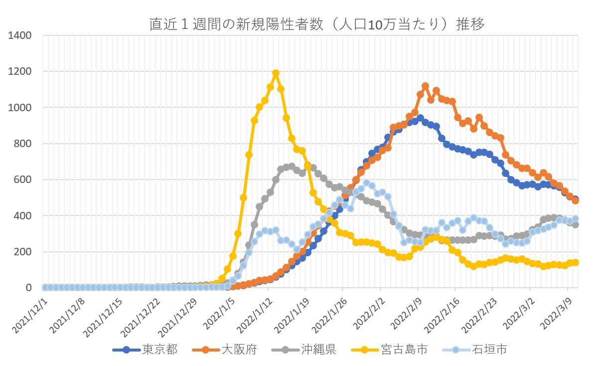 【速報・新型コロナ】10日、直近1週間の新規陽性者(人口10万人当たり)